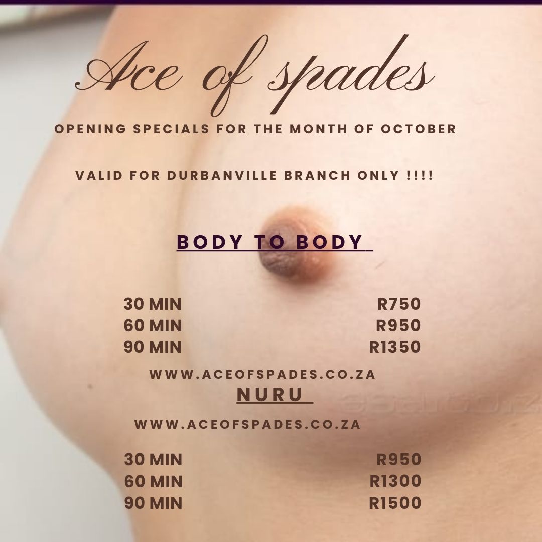 ACE OF SPADES was born from the necessity of establishing a premier, high-end, immaculate and professional therapeutic massage studio in Cape Town.(Northen Suburbs) Our studio offers nude sensual massages by attractive masseuses that expertly balance sensuality without the stigma of providing full-blown sex.